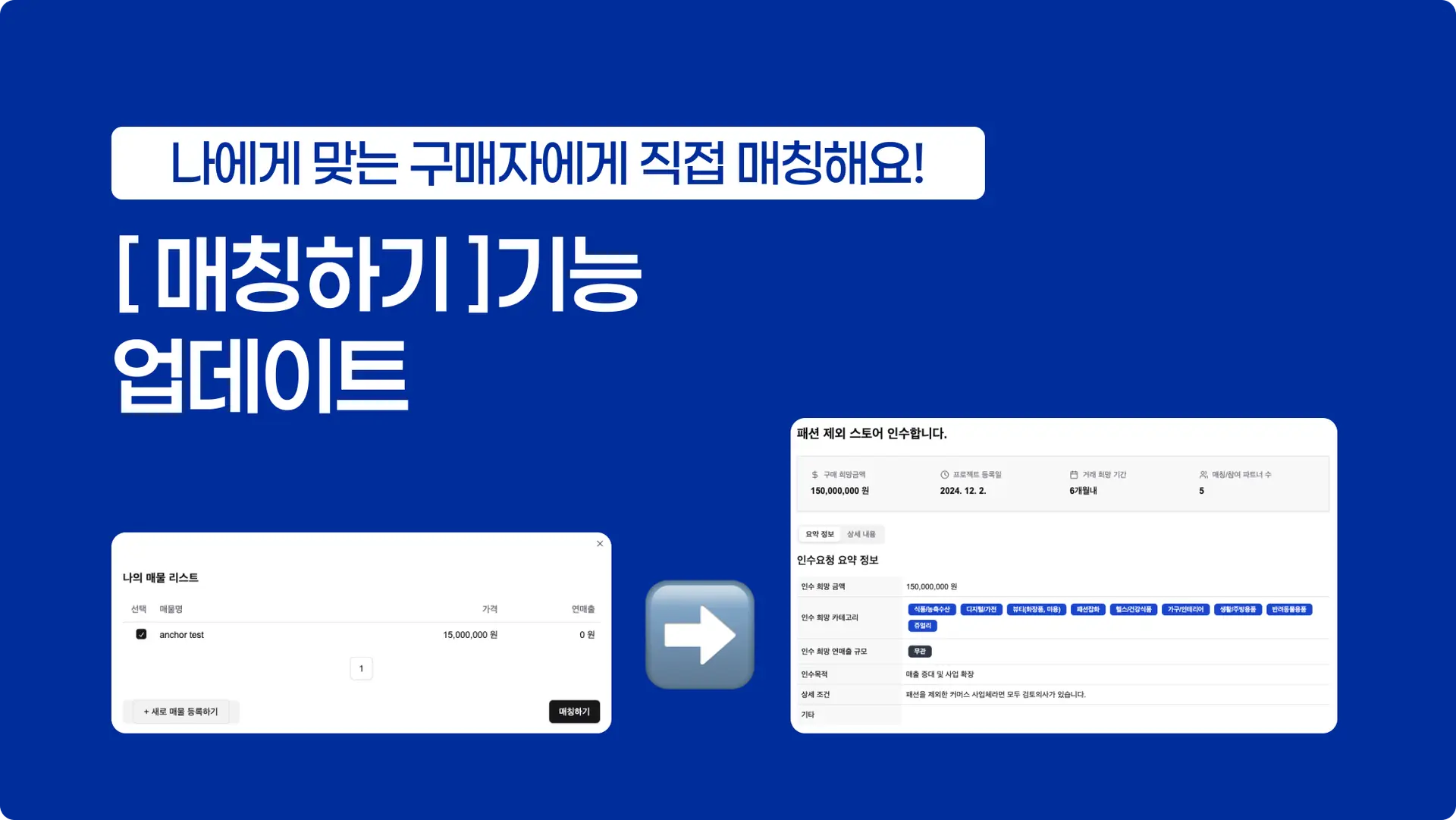 매칭하기 기능을 통해 내 매물에 맞는 구매자에게